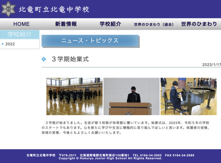 Vào thứ Bảy, ngày 4 tháng 2 năm 2023, trang tin tức "e-kensin" do Báo Xây dựng Hokkaido (trụ sở chính: Thành phố Sapporo) điều hành đã đăng một bài viết có tiêu đề "5,6 tỷ yên cho việc xây dựng trường học tích hợp, v.v. Kế hoạch di dời cơ sở công cộng của thị trấn Hokuryu (ngày 1 tháng 2 năm 2023)" [...]