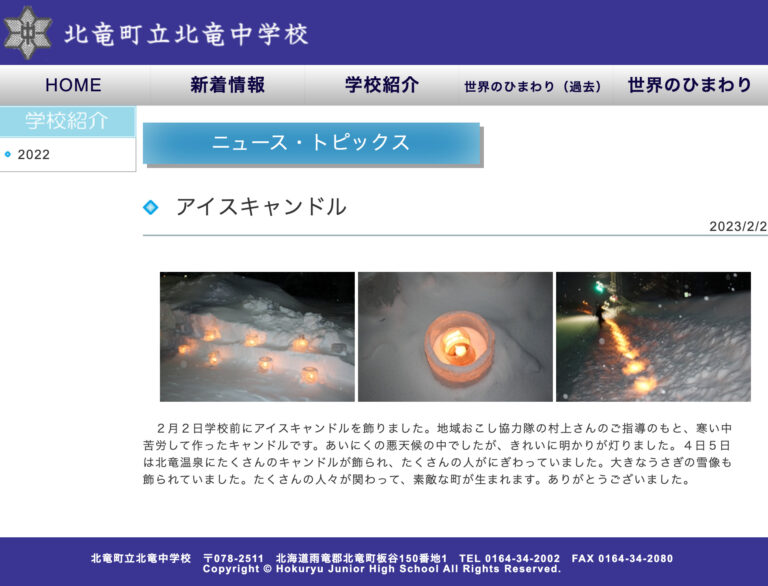 Nến băng sẽ được thắp sáng vào Thứ Tư, ngày 25 tháng 1 năm 2023, trước Trường Trung học Cơ sở Hokuryu vào Thứ Năm, ngày 2 tháng 2 và trên sân Công viên Hướng Dương Hokuryu Onsen từ Thứ Bảy, ngày 4 tháng 2 đến Chủ nhật, ngày 5 tháng 2 năm 2023. Masu. Nó được lên kế hoạch bắt đầu tuần tự từ lúc mặt trời lặn. Hồi sinh khu vực thị trấn Hokuryu […]